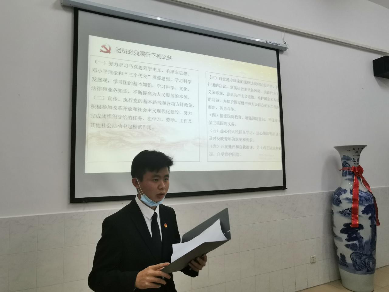 紧接着,入团介绍人胡挺财宣读《团章》中有关团员的义务和权利的条款。在宣读完毕后,由新老团员代表分别进行发言。