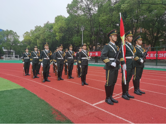 “升旗仪式正式开始!”随着一声令下,英姿飒爽的国旗护卫队迈着铿锵有力的步伐,喊着响亮整齐的口号,以庄严肃穆的态度护送鲜艳的五星红旗走向升旗台。“升国旗,唱国歌!”伴着《义勇军进行曲》的奏响,五星红旗载着每位新生对大学的憧憬和希望冉冉升起,升上瓦蓝瓦蓝的天空全体师生站得笔挺,怀着自豪和崇敬的心情瞻仰迎风飘扬的国旗。