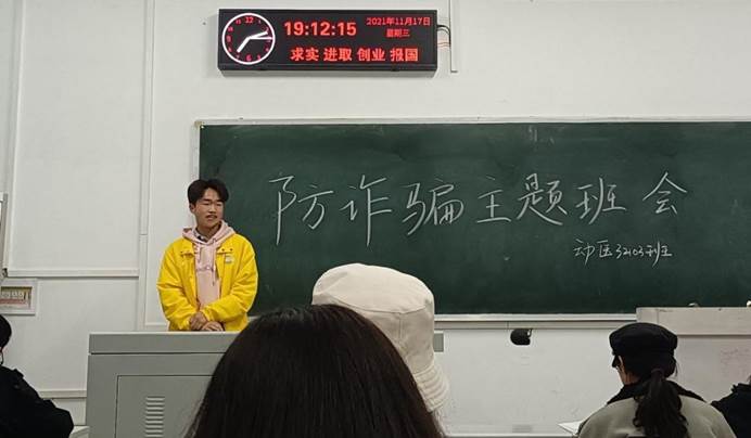 (通讯员:杨湘虹 凤昊)科技发展的日新月异,信息网络普及我们的生活,但这也让很多不法分子趁虚而入,侵蚀网络空间。他们利用电话、QQ 、微信号、邮箱等作案手段不断翻新。为提高同学们的防范意识,保障财产安全,太阳集团7237网站于2021年11月17日在晚自习期间组织大一同学以班级为单位举办防诈骗主题班会、动医32101班班主任张佳兰、21级辅导员杨湘虹,兼职辅导员严子星参加了本次班会。