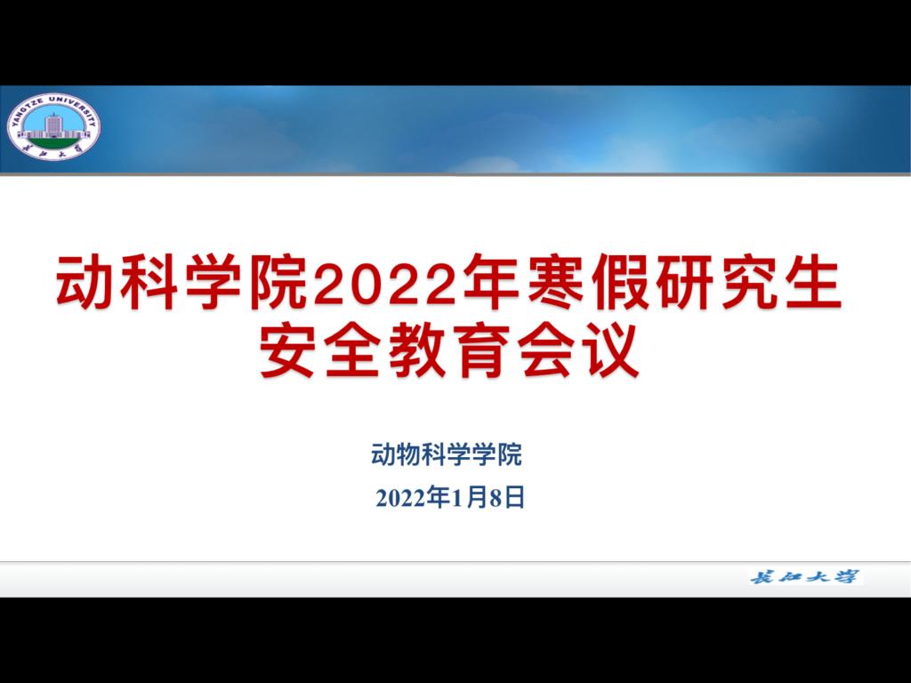 (通讯员:喻泽坤)为进一步加强研究生寒假安全教育,做好研究生假期疫情防控工作。动科学院研究生各年级于1月8日晚7:00在腾讯会议召开动科学院2022年寒假研究生安全教育会议。会议由研究生辅导员喻泽坤主持,全体研究生参加了此次的会议。