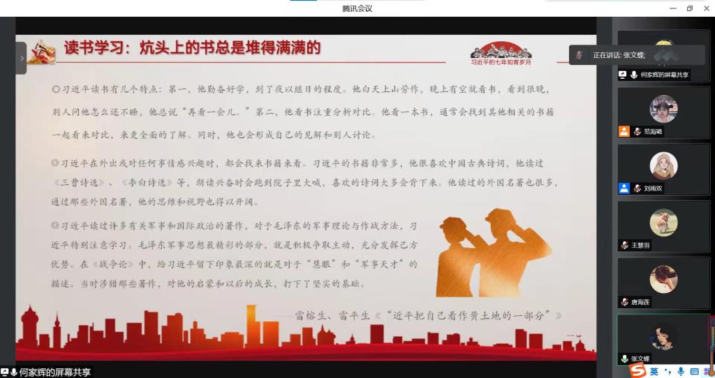 (通讯员:范海璐 张文蝶)1月27日晚7时,太阳集团7237网站第二期青马学习小组在线上开展趣味课堂活动,对《习近平的七年知青岁月》一书进行学习成果汇报,并邀请第十六期青马班霁晓十组学员共同交流学习。