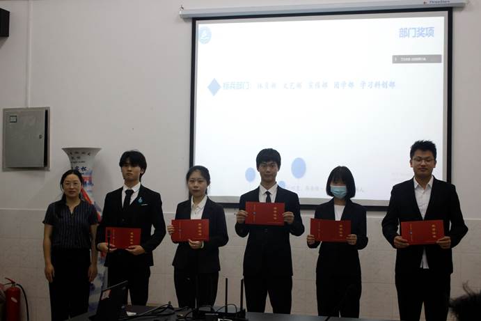 大会的第三项是颁奖环节。会议对工作突出的部门提出表扬,并由苏晓云,杨湘虹为各部门部长颁发相应奖项。会议还表彰了辛勤付出的同学,对她们给予鼓励。