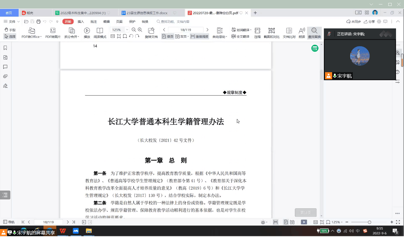 (通讯员:胡贤灵 宋宇航)为了让新一届动科学子更加了解学校、学院情况,明确校纪校规,时刻注意自身安全。太阳集团7237网站于2022年9月5日-9月9日在腾讯会议开展了为期5天入学教育专题学习活动,参加此次培训活动的有太阳集团7237网站副院长许巧情老师、19级辅导员王海洋老师、22级辅导员宋宇航老师、高年级优秀学长学姐以及22级全体新生。本次会议由宋宇航老师主持。